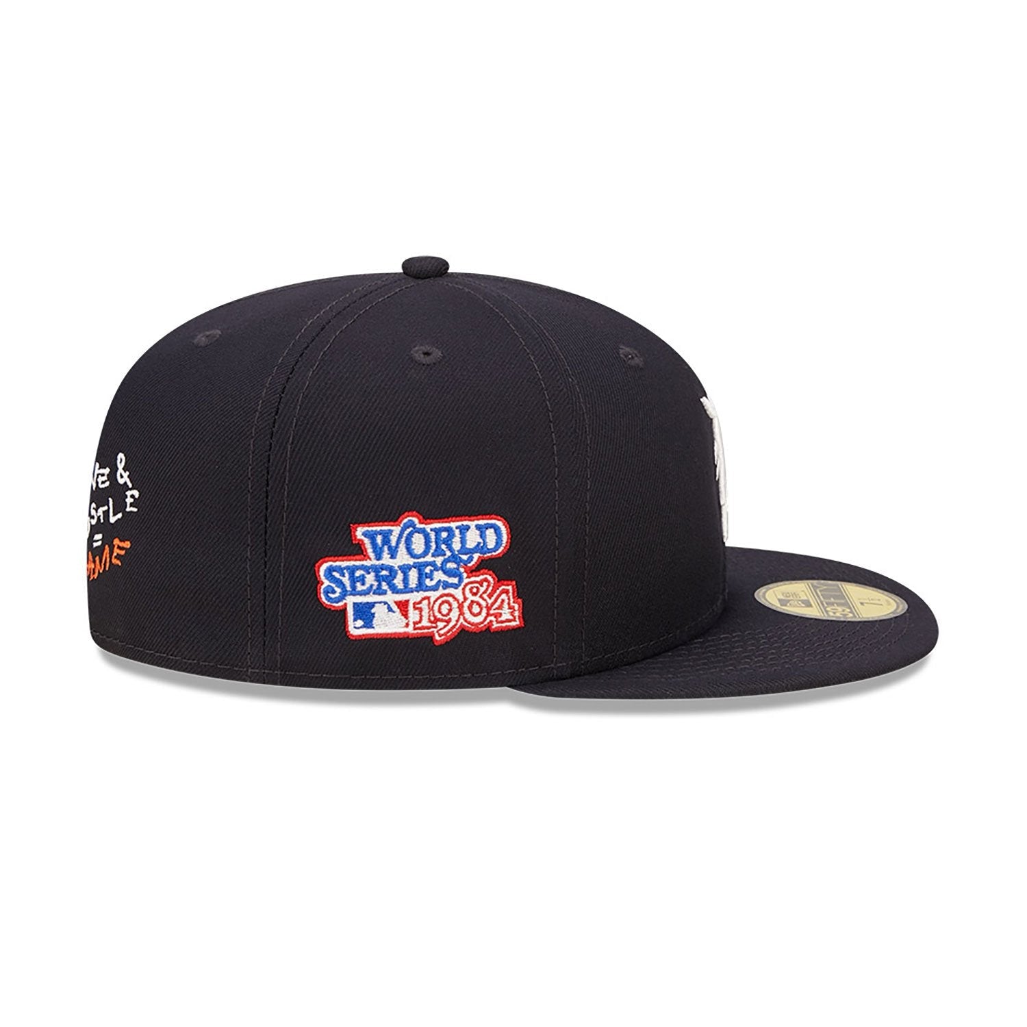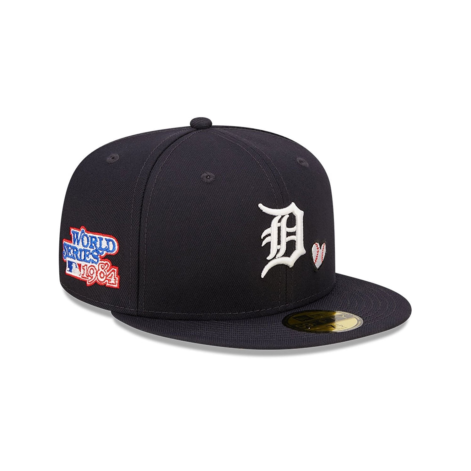 Show your support for the Detroit Tigers with the MLB Team Heart Navy 59FIFTY Fitted Cap. This classic fitted cap features a deep navy blue color and a structured crown for a timeless look. The front is adorned with a bold, embroidered Detroit Tigers logo, celebrating your team pride. The 59FIFTY design ensures a snug fit and premium comfort, while the flat visor adds a touch of style. With the iconic New Era flag stitched on the side, this cap is a must-have for any Tigers fan. Made from high-quality materials, it offers durability and comfort whether youβre at the game or on the go.