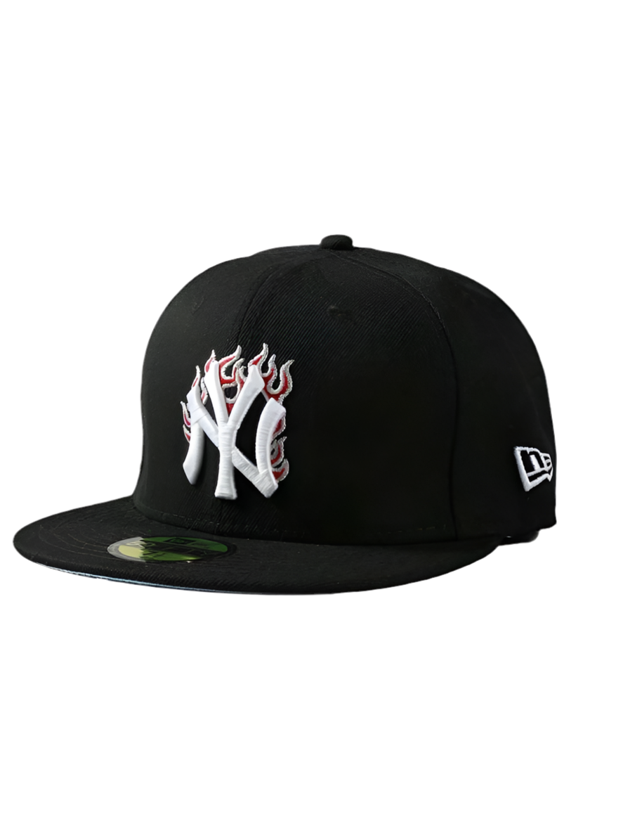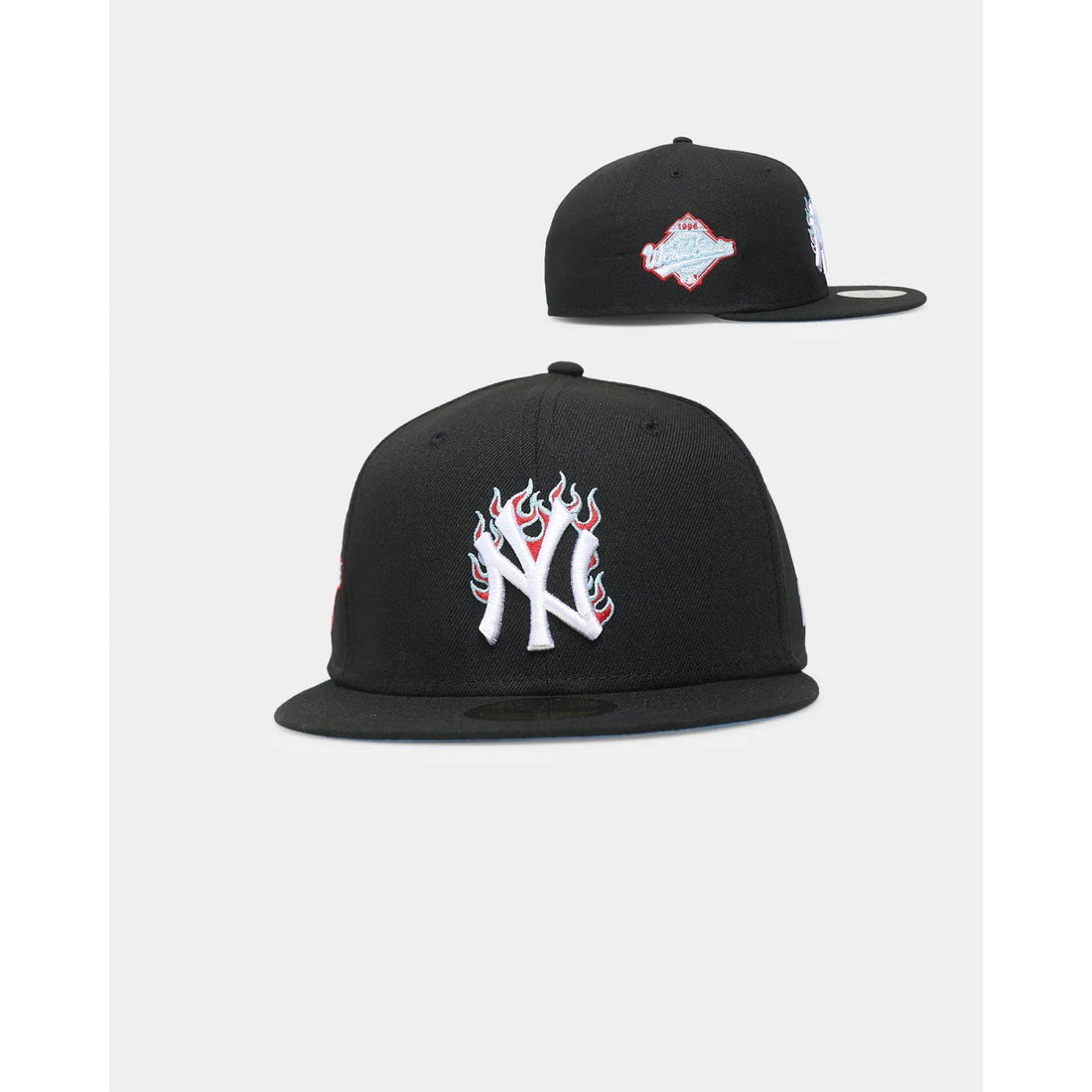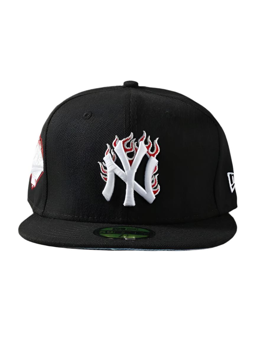 β’ New Era New York Yankees Black Fitted Hat MLB Fire Flames Team